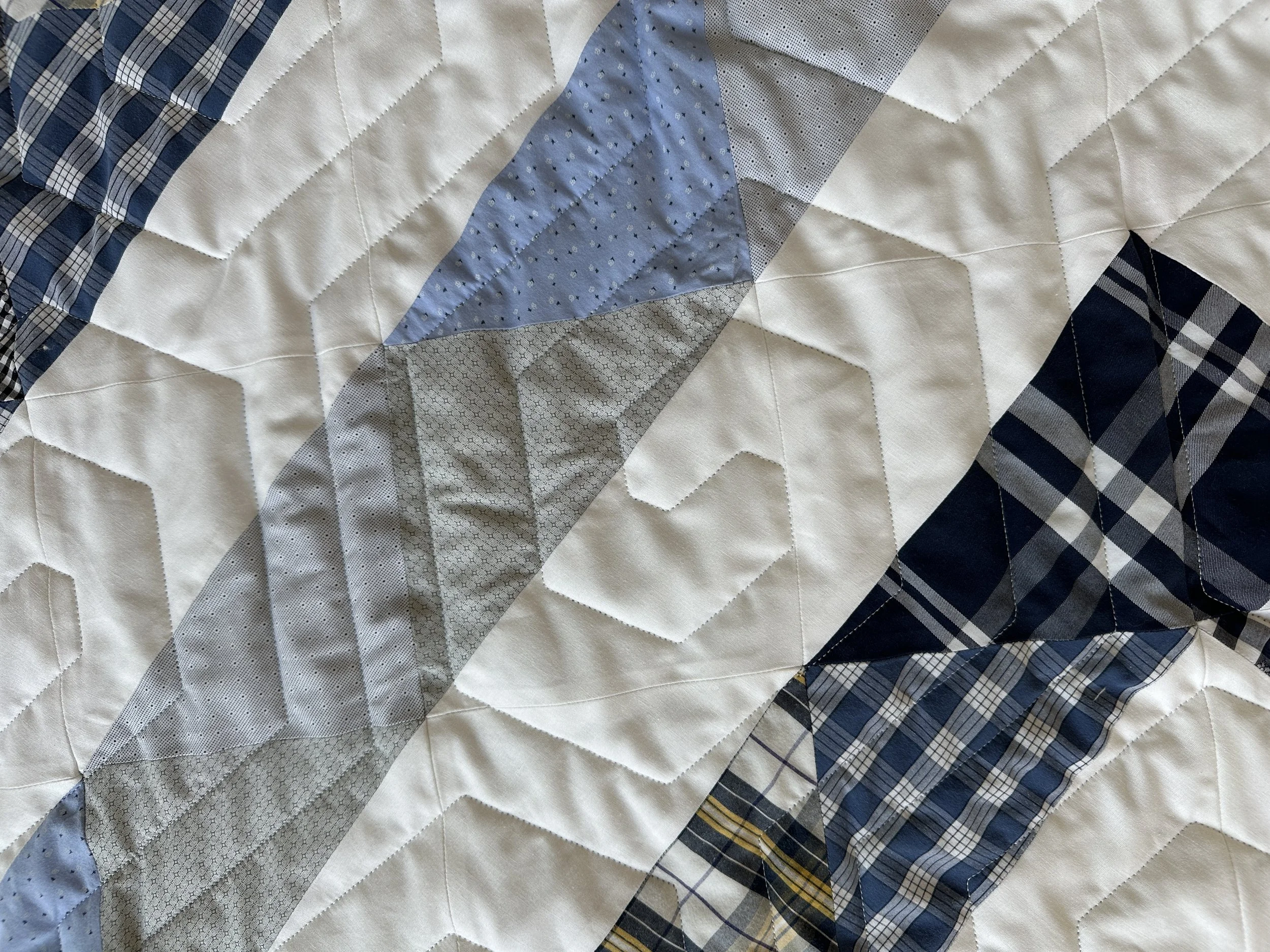 Dual Spiral features matching spirals radiating from the center of this square quilt. Each swirl seamlessly transitions into the next, creating an engaging design. The edge to edge pattern Honeycomb #2 was used to longarm quilt this quilt which measures 66” x 66”